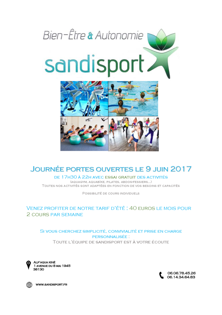 Pour les contacter : 06.06.78.45.26 ou 06.14.34.64.83 / http://www.sandisport.fr/