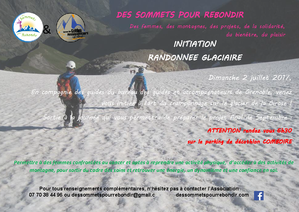 Plus d’informations sur le flyer ou auprès de Véronique, la présidente, au 07 70 38 44 96 ou dessommetspourrebondir@gmail.com
