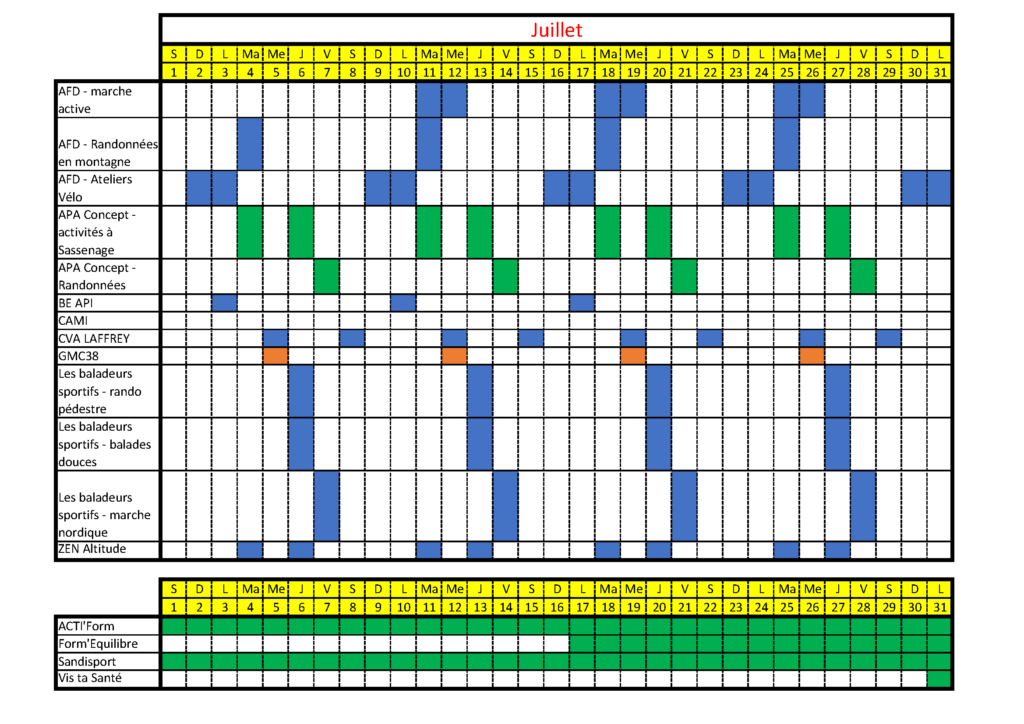 - l’AFD38 avec la marche active au Parc Paul Mistral (« L’été !Oh Parc ») et à Pablo Picasse, les randonnées en montagne et les ateliers vélo les dimanche et lundi ;