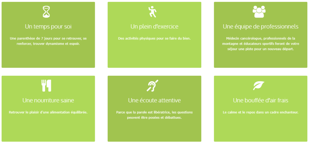 Passage en Vercors propose aux patients en fin de traitement anti-cancéreux des séjours comportant un accompagnement médical et psychologique, des activités physiques et des soins de bien-être. Ces séjours permettent :