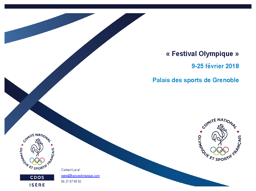 Vous trouverez ci-contre l'invitation-programme. Nous comptons sur vous pour informer, communiquer et mobiliser, vos amis, les clubs et athlètes de votre discipline, qu’elle soit Olympique ou non, d’hiver ou d’été, constituer des équipes de supporters, suggérer aux clubs d’intégrer dans le planning de leurs stages jeunes des visites au Festival Olympique. Toutes les animations sont gratuites.