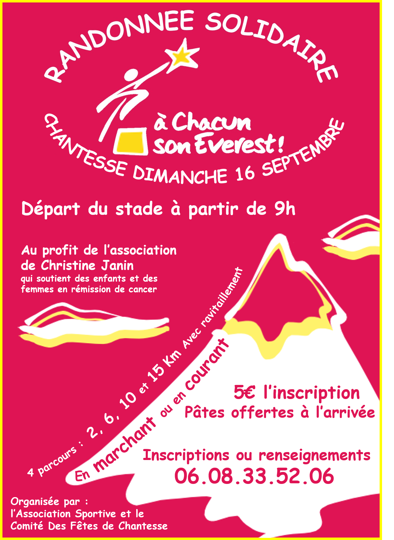 L’inscription est de 5€ et vous randonnerez au profit de l’association Christine Janin qui soutient des enfants et femmes en rémission de cancer !