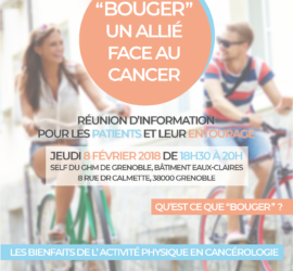 Jeudi 8 février aura lieu la troisième édition de la soirée d’information sur l’activité physique et le cancer au sein de la clinique mutualiste de Grenoble.  Rendez-vous à 18h30 pour aborder les thèmes suivants :   » Qu’est-ce que bouger ?  » avec l’intervention du Dr Caroline DOUCHANT, médecin coordinateur de […]