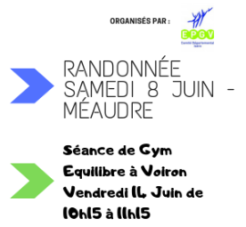 Randonnée EPGV Samedi 8 Juin – départ de Méaudre Vendredi 14 Juin, de 10h15 à 11h15, à Voiron : Gym équilibre Le vendredi 14 juin, des éducateurs sportifs en formation Gym Équilibre de la Fédération de Gymnastique Volontaire viennent valider leur formation toute la journée au Tremplin Sport Formation à […]