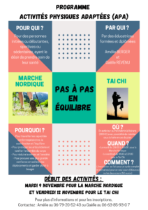 Nouveau cycle d’activité : « Pas à pas en équilibre » avec la combinaison de 2 activités la Marche Nordique et le Tai Chi.