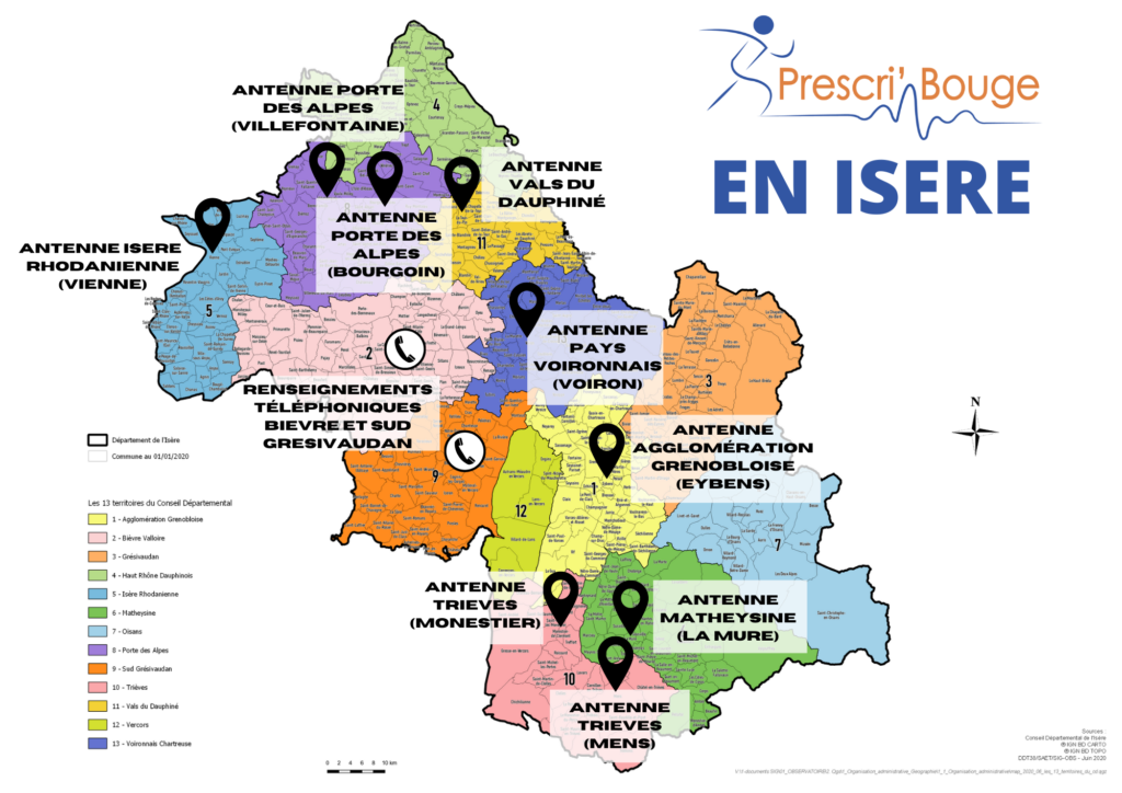 Déjà présent sur l’agglomération grenobloise ainsi que sur le Pays Voironnais, le Trièves et la Matheysine, Prescri’Bouge étend son champs d’action en 2022 et vient s’implanter sur 3 nouveaux territoires :