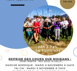 Pas à Pas en équilibre est un programme proposé sur Moirans par Amélie BERGER et Gaëlle REVENU. Ce programme d’Activités Physiques Adaptées (APA) s’adresse à toutes les personnes ayant le désir de prendre soin de leur santé par le mouvement. Il s’adresse donc tout particulièrement aux personnes fragiles ou en situation de […]