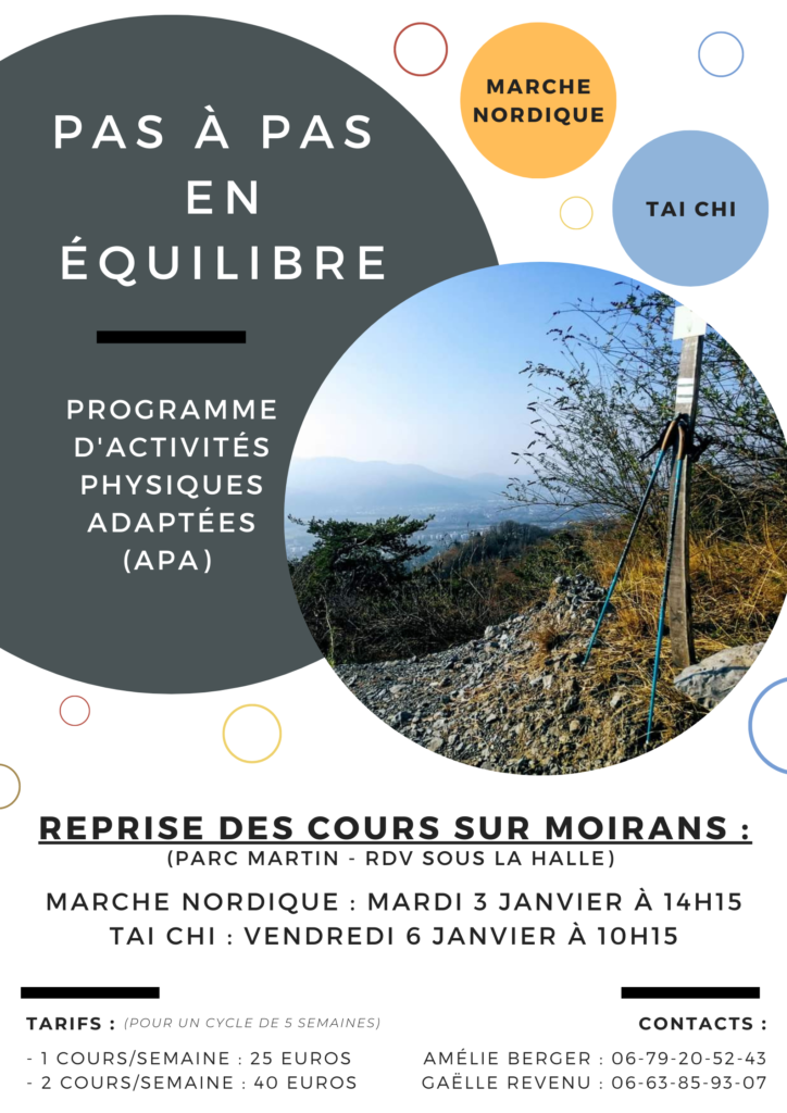 La marche nordique et le Tai Chi de l’action « Pas à Pas en Equilibre » ont repris cette semaine sur Moirans.