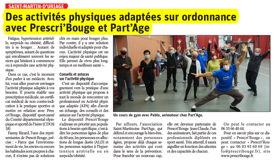 Notre DAPAP (Dispositif d’Accompagnement vers la Pratique d’Activités Physiques) a été mis à l’honneur sur le Dauphiné Libéré !