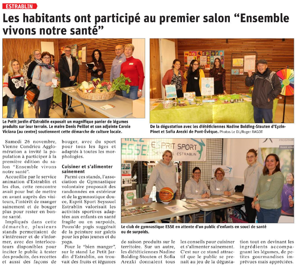 Le 1er salon Ensemble animons notre santé s’est déroulé samedi 26 novembre 2022 sur deux communes de Vienne-Condrieu Agglomération. Tandis qu’à Estrablin (Isère), la Maison des associations était le théâtre d’animations, à Sainte-Colombe-les-Vienne (Rhône), à côté des stands proposée par des institutions et associations, des parcours de santé à bicyclette étaient proposés au pied de la Verrière des Cordeliers.