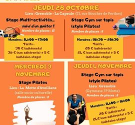 CYCLE APA A MOIRANS Nouveau cycle d’activité : « Pas à pas en équilibre » avec la combinaison de 2 activités la Marche Nordique et le Tai Chi. Journée d’initiation : Vendredi 29 octobre de 9h30 à 11h30 au Parc Martin à Moirans Début des cycles sur Moirans à partir du mardi 9 novembre pour la Marche […]