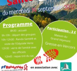 Mercredi 14 Septembre, Prescri’Bouge était présent à la Rando Santé organisé à Gresse en Vercors. Mélanie MENS, référente chez Prescri’Bouge, a accompagné 14 bénéficiaires pour cet événement. Cela nous a permis de nouer de plus fort lien avec l’association Les Circuits Pédestres du Trièves qui veulent développer la rando […]